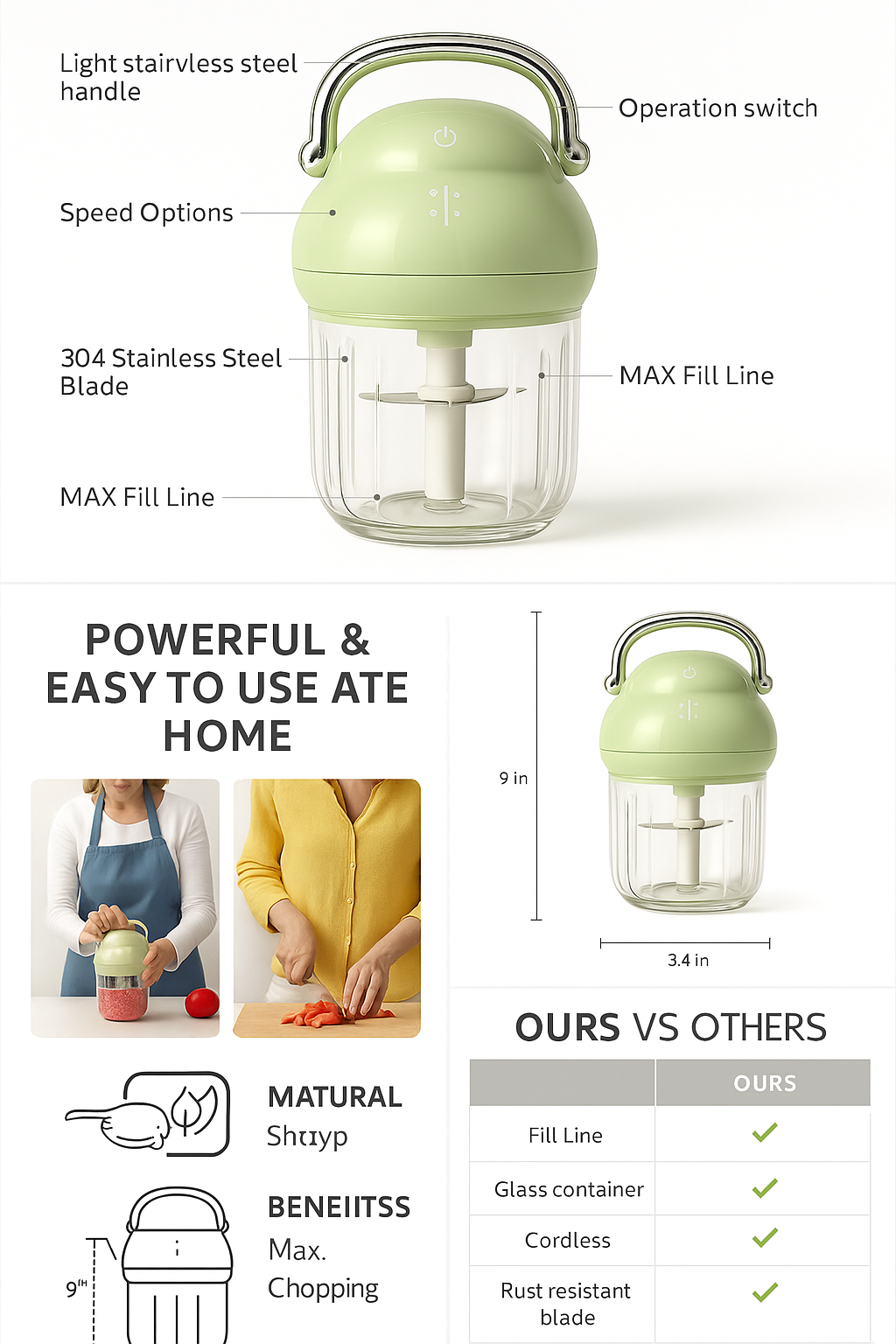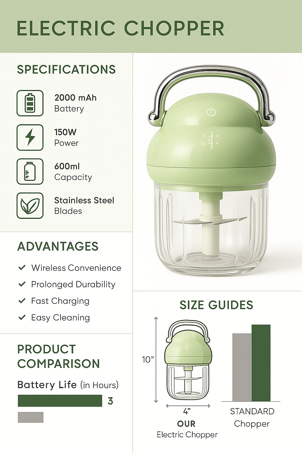 Powerful Performance – 150W motor for quick and efficient chopping.